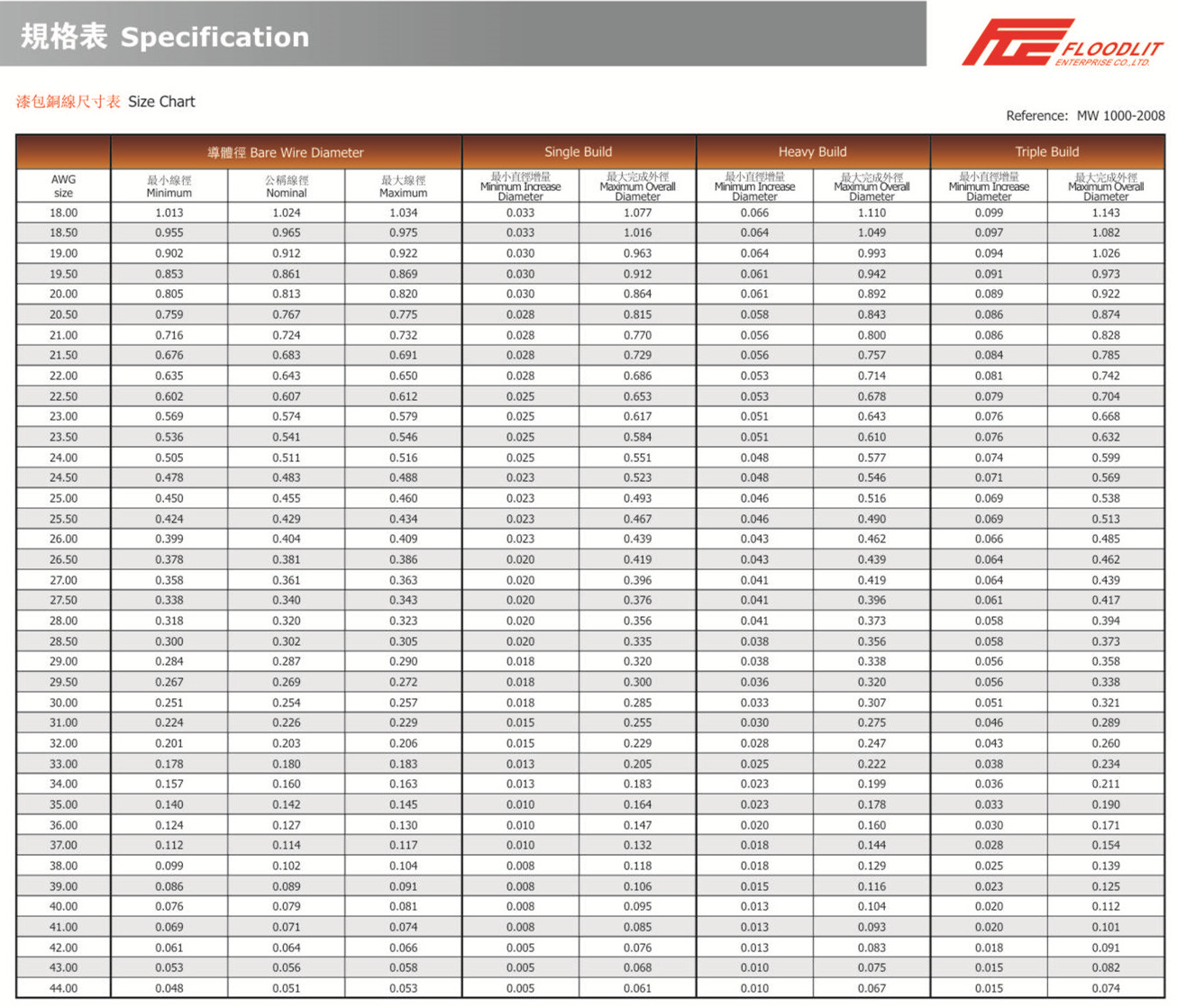 规格表