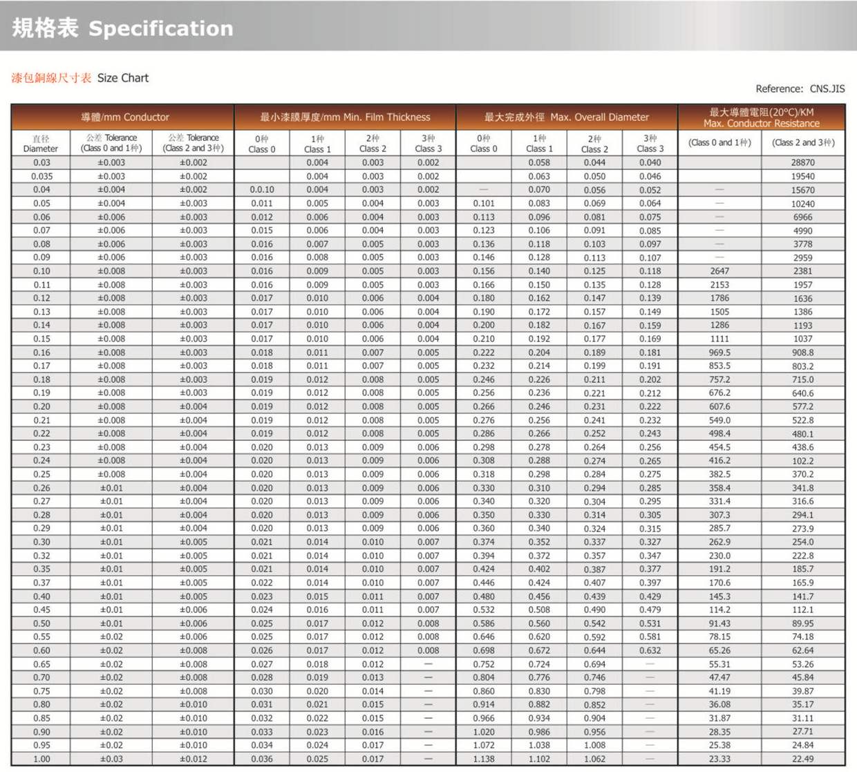 铜线张力对照