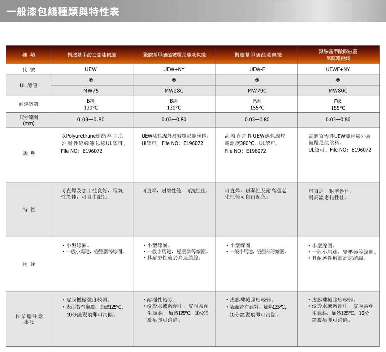 漆包线产品特性