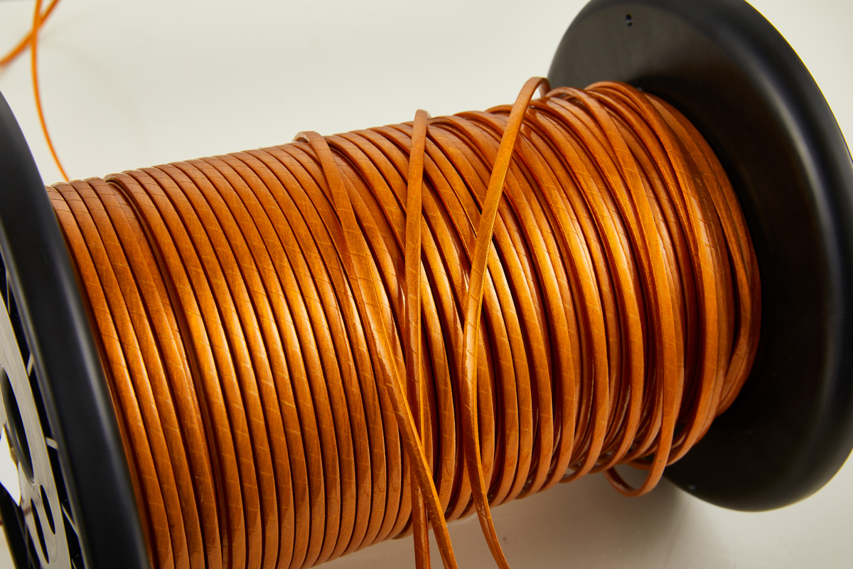 在單線或漆包绞线外,包覆單層或多層薄膜作为绝缘层的长方形或者矩形的电磁线。常用的薄膜有:PI、PET、PEN、铁氟龙等。